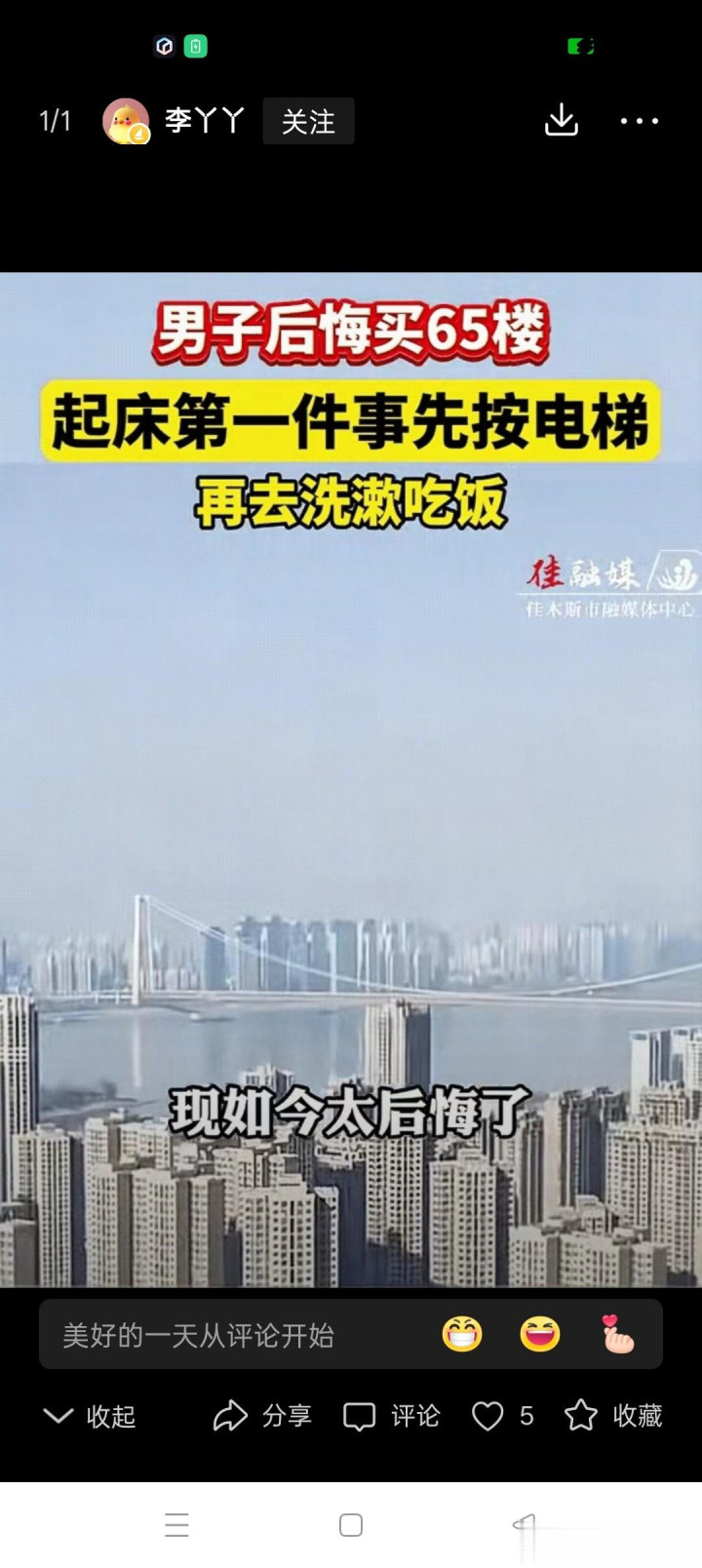 网友们对此也是议论纷纷。有网友调侃说:“65楼,买的时候是对这个数字没什么概念吗?现在知道后悔了,只能怪自己买房的时候没有考虑清楚。”这话说得在理,就像我们买东西,不能只看外表光鲜,还得考虑实际使用起来方不方便。还有网友庆幸地说:“还好我家买的是10楼,不算高,即使停电上下楼也不觉得累。”这就像在爬山,10楼的高度就像爬个小山坡,轻松自在;而65楼就像攀登珠穆朗玛峰,每一步都充满挑战。